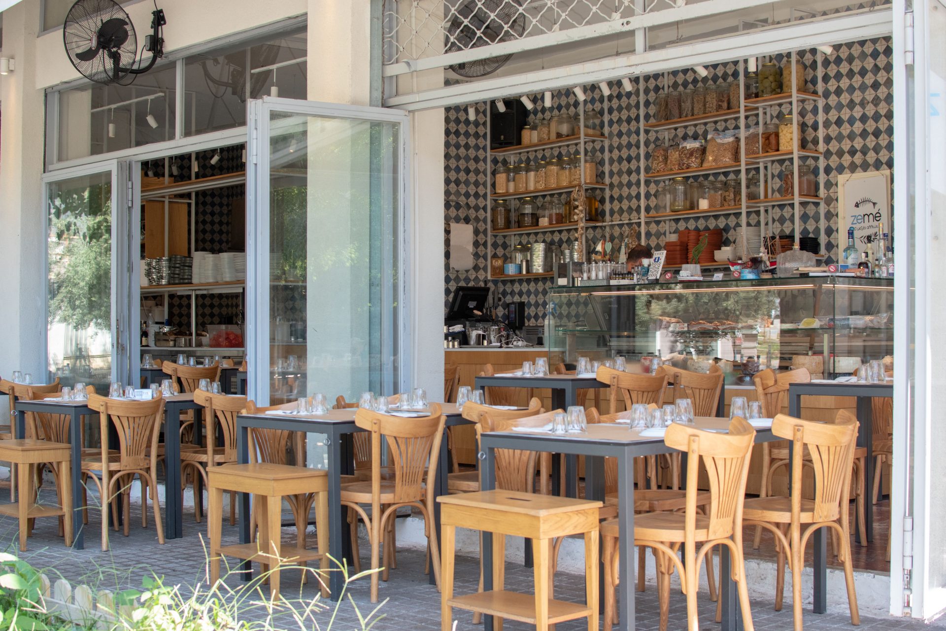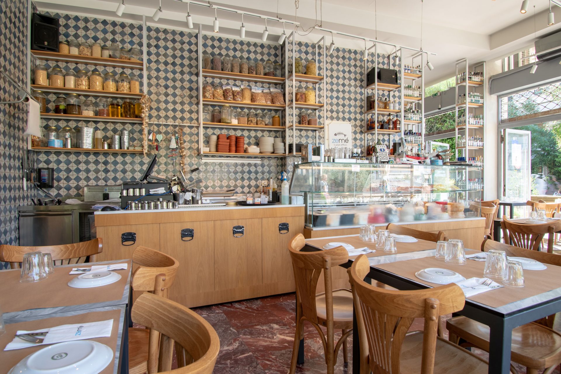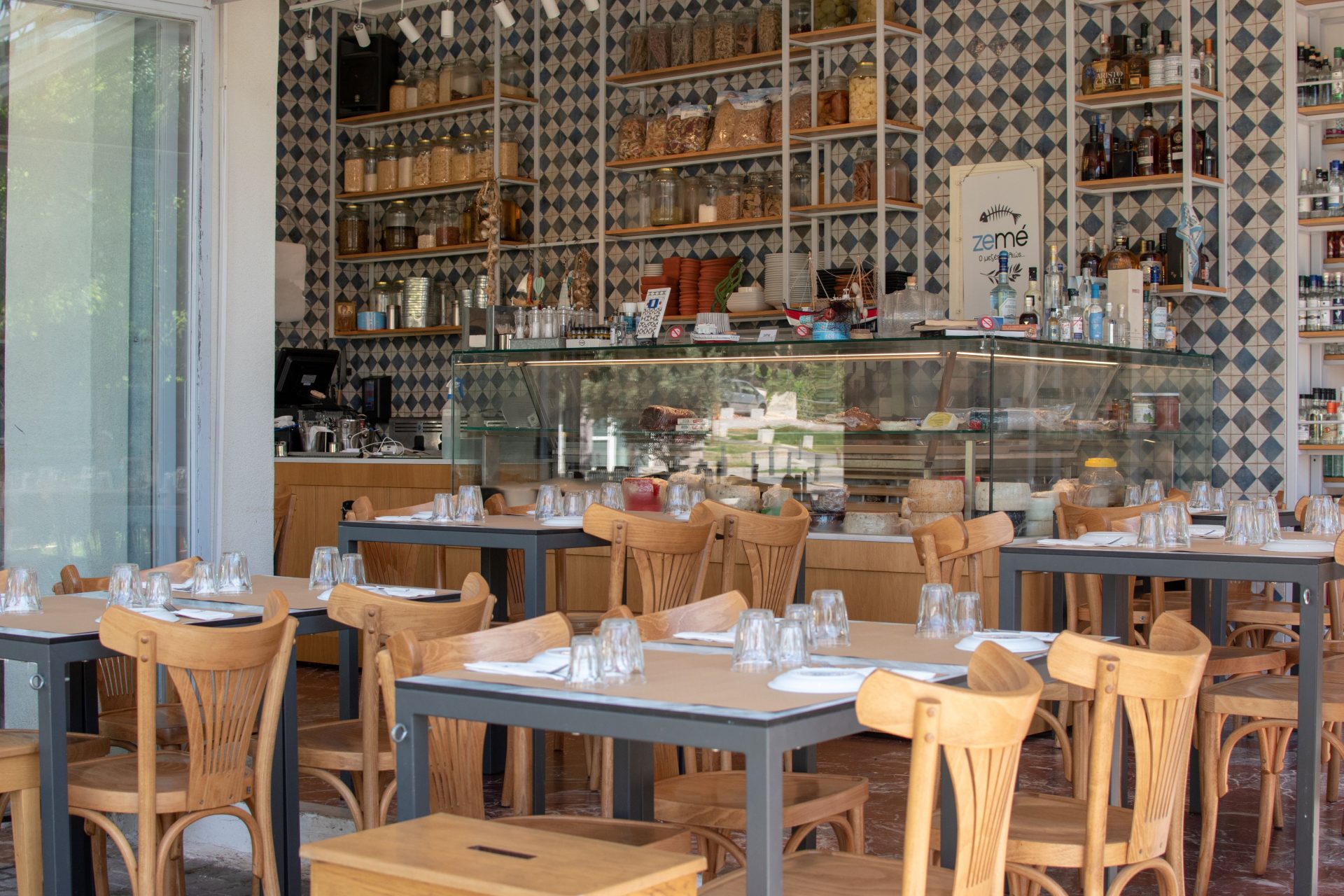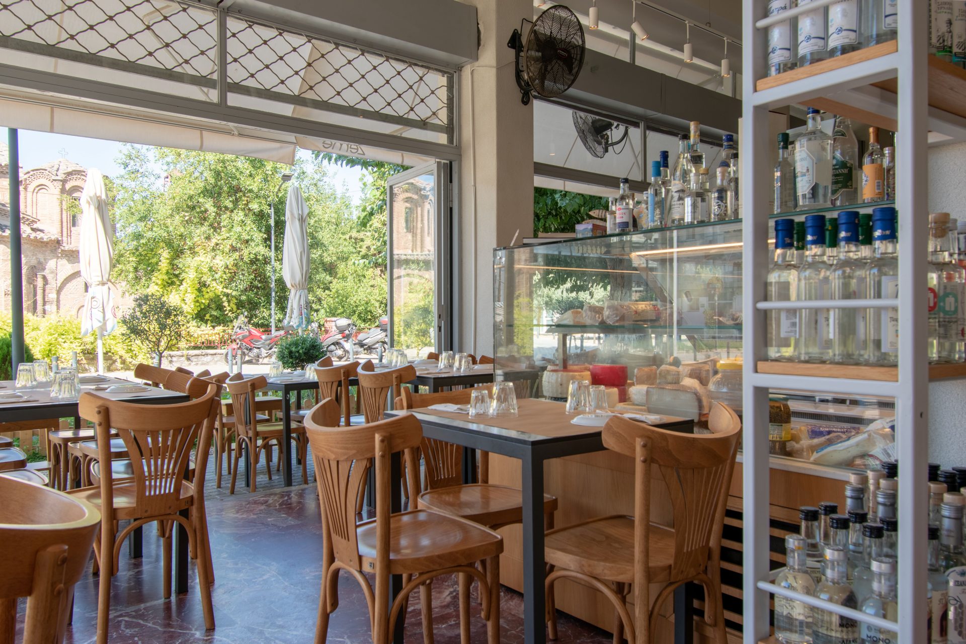 Our aim as VAG design agency was to communicate and promote the best ambassador of Thessaloniki, Greek meze. For that reason all the designs and shopfitting solutions focus to the creation of a cozy atmosphere with retro touches and view of the open kitchen.